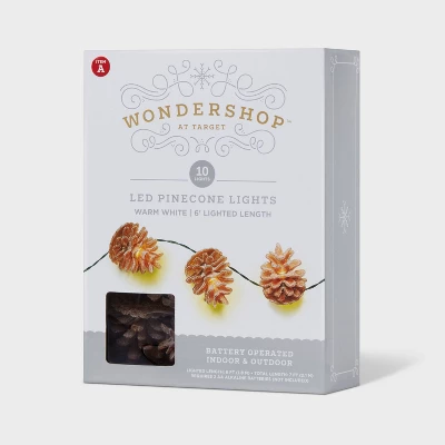 10ct LED Battery Operated Sugared Pinecone Christmas Indoor/Outdoor Novelty String Lights Warm White With Green Wire – Wondershop™