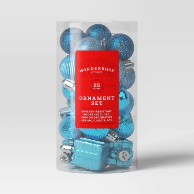25ct Assorted Shatter-Resistant Christmas Tree Ornament Set – Wondershop™