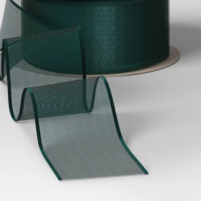 30′ Christmas Fabric Ribbon Green Sheer – Wondershop™