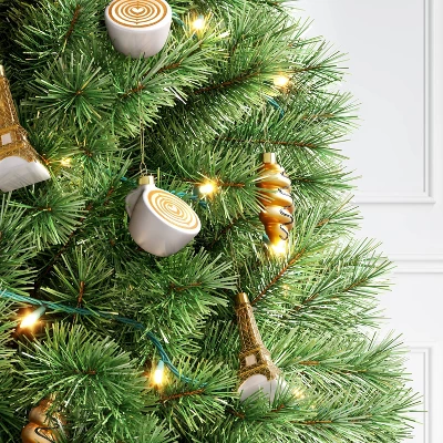 Bring Parisian warmth to your festive decor with this 3-Piece Gift Ornament Set Paris from Wondershop™. Made of glass, this ornament set features a latte mug, the iconic Eiffel Tower, and a buttery croissant in white, brown and gold colors. Plus, each ornament has a gold-tone cap with a coordinating string loop for easy hanging from the branches of your Christmas tree.