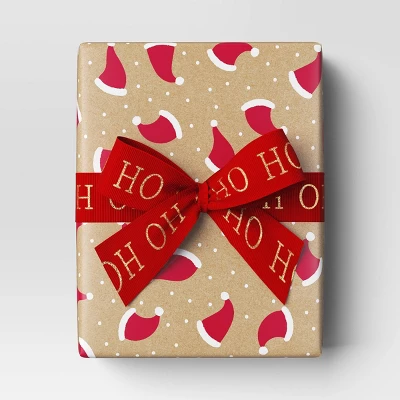 40″ 220 Sq Ft Christmas Roll Wrap Santa Hats On Kraft – Wondershop™