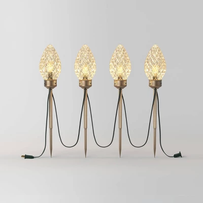 Impress the neighbors with your seasonal decor with these 4-Piece LED Big Bulb Christmas Novelty Pathway Lights from Wondershop™. Featuring ground stakes for easy installation, these LED pathway lights cast a warm, soft glow and connect end to end to line up along your walkway. They’re perfect for illuminating the path to your front door to welcome Christmas guests.