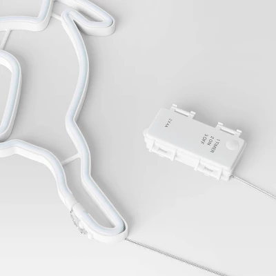 Add vintage charm to your seasonal decor with this Christmas Faux-Neon Leaping Green Deer from Wondershop™. This Christmas light sign is designed in the shape of a leaping deer with an open cutout design that glows with LED bulbs in neon green, giving off a faux-neon sign look while infusing cheery, nature-inspired charm into your space. Made from ABS material, it’s suitable for both indoor and outdoor use and comes with a hanging ring for easy installation.